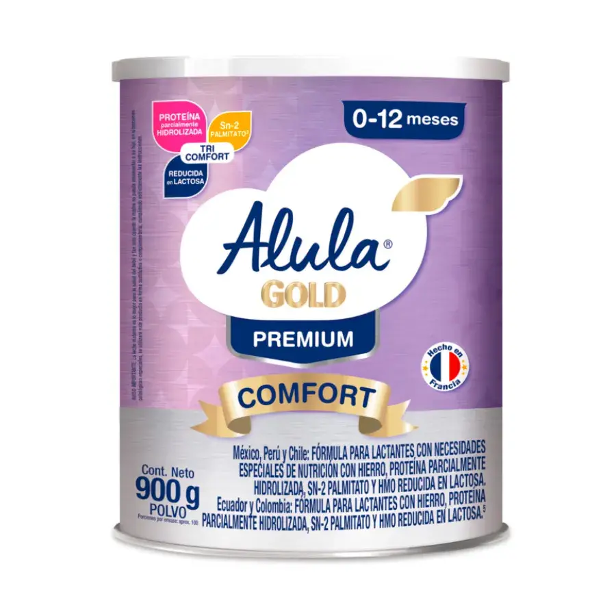 Alula® GOLD COMFORT PREMIUM está formulada conproteína de suero parcialmente hidrolizada, aceites vegetales yuna cantidad reducida de lactosa. Alula® GOLD COMFORTPREMIUM no está recomendada para lactantes con alergiaconfirmada a la leche de vaca. Se deben seguir los consejos médicossobre la necesidad de utilizar fórmulas infantiles y sobre los métodosapropiados para usarlas, así como sobre todos los temas de laalimentación infantil. Debido a su proceso especial, Alula® GOLDCOMFORT PREMIUM tiene un olor y sabor diferente.