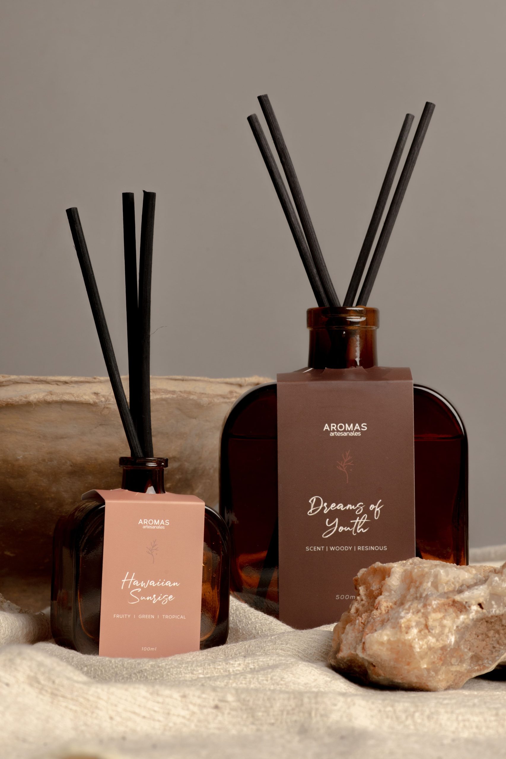 El sistema es muy sencillo. Consiste en unas cañas de poliamida o fibras prensadas, denominadas mikados, que se impregnan de fragancia consiguiendo ambientar un espacio.
