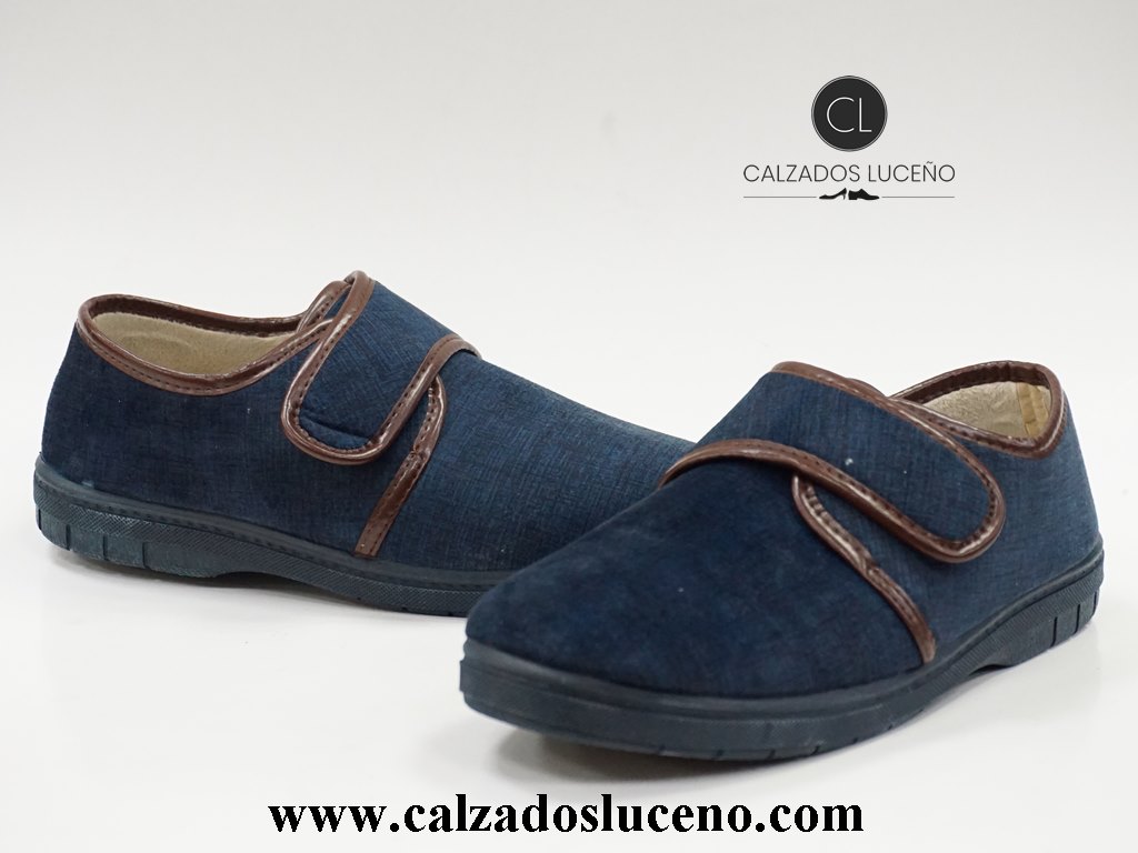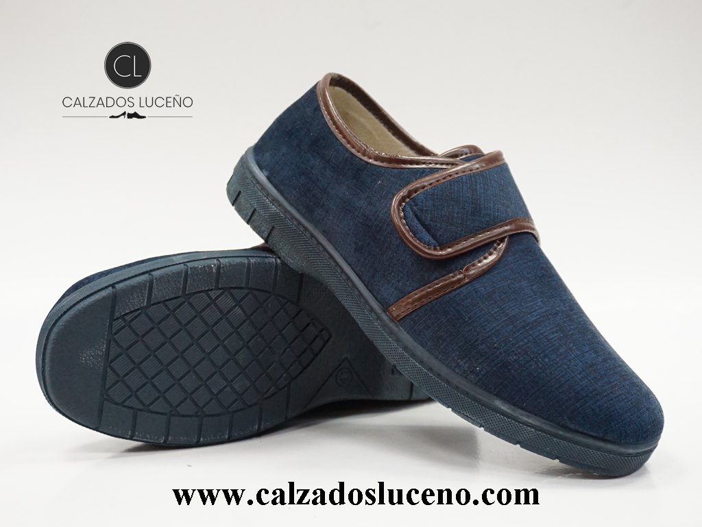 Bd Zapatilla Hombre Velcro Invierno Modelo 980 en Color Azul Marino Con Suela Vulcanizada Antideslizante Fabricada En Paño Arizona y Forrada.