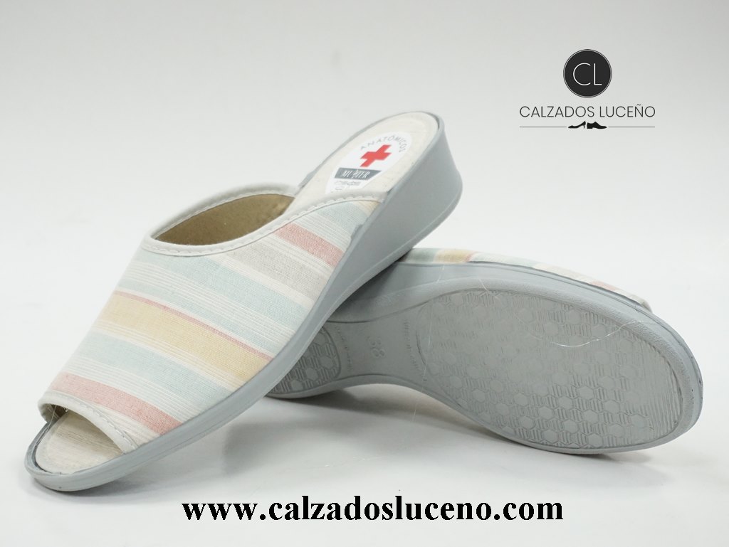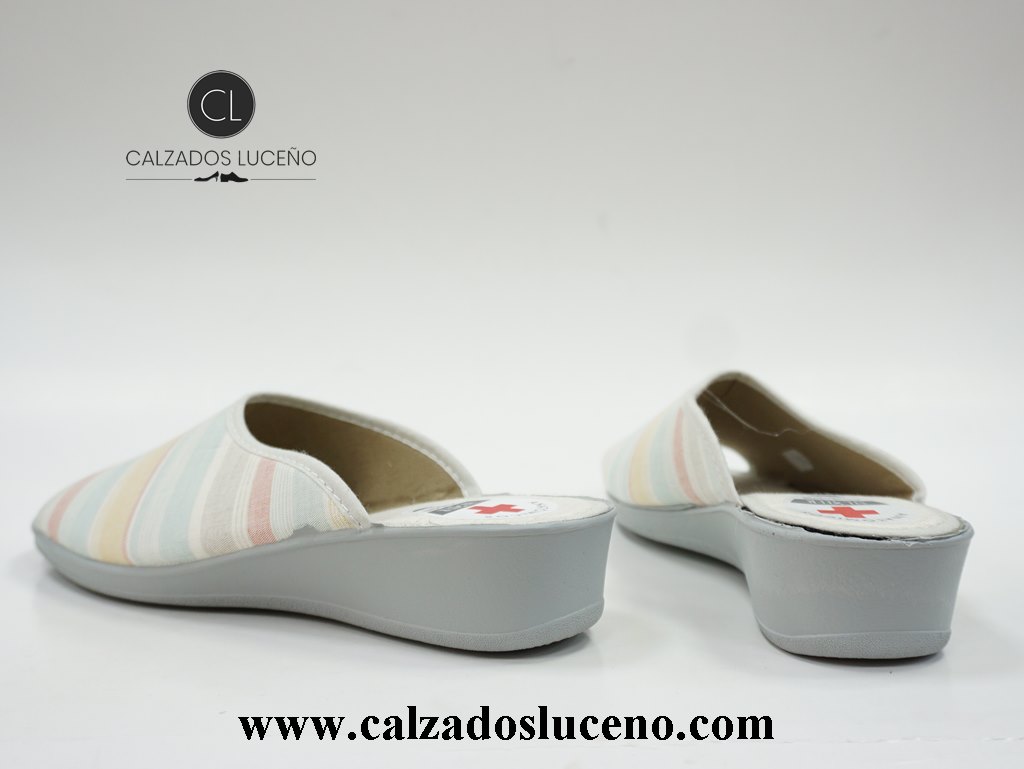 Muyter Chinela Casa Mujer Cuña Modelo 702 Color Hielo Con Rayas Unas Chanclas De Hogar Con Suela de Goma Antideslizante. Fabricadas en España.