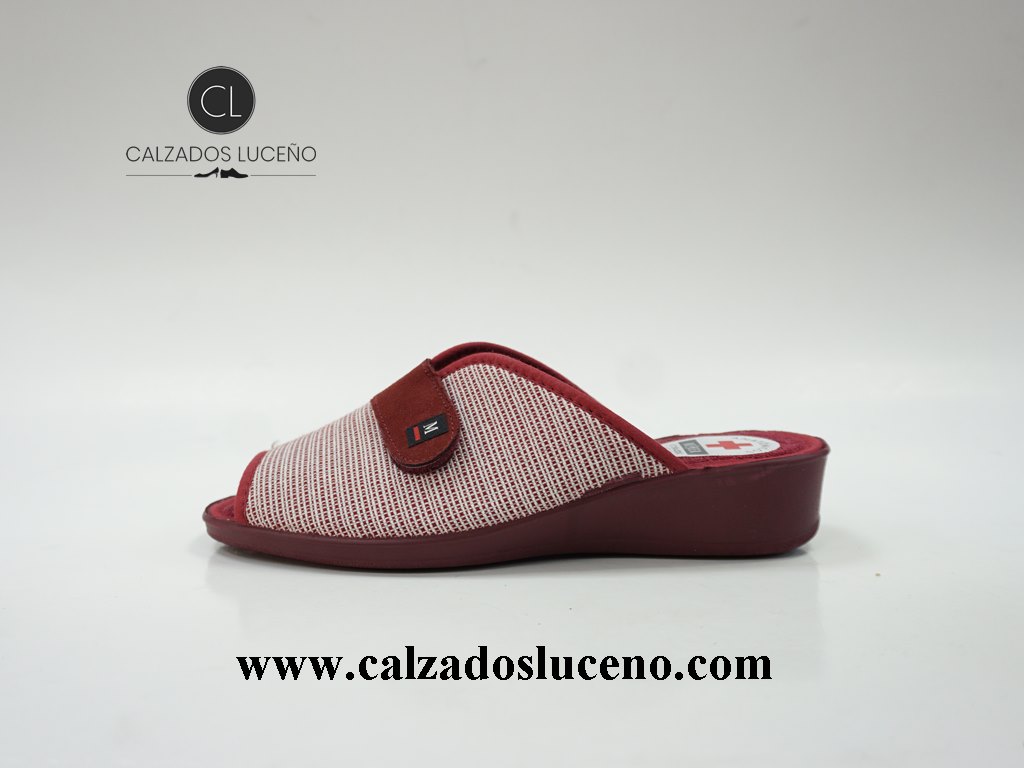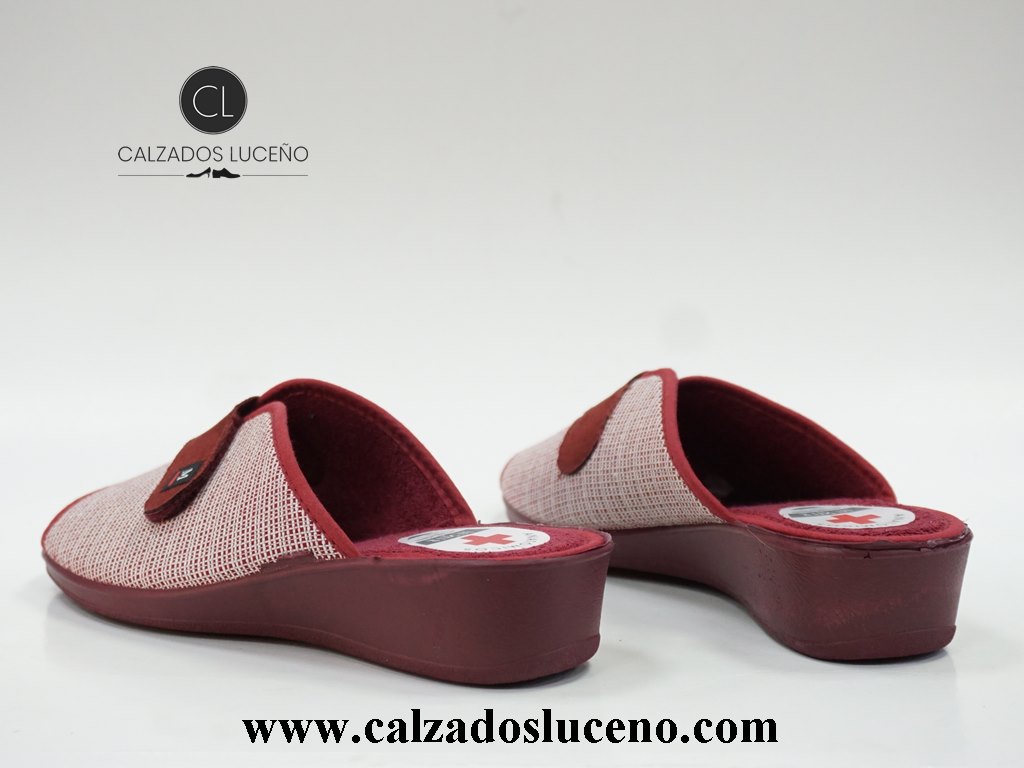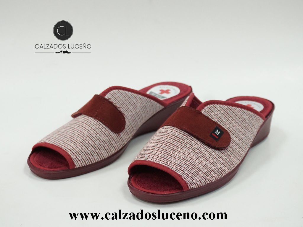Muyter Zapatilla Mujer Casa Verano Chinela Con Velcro Ajustable en el Empeine Modelo 768 Color Burdeos Con Cuña Y Suela Antideslizante.