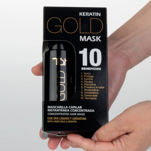 MASCARILLA CONCENTRADA DE EFECTO INSTANTÁNEO 125 ml. con Oro líquido y Queratina. Nutre e ilumina intensamente, cuidando de las zonas especialmente frágiles y sensibles de manera dirigida. Fórmula con reflectores de luz que envuelven la fibra capilar para proteger de las agresiones extremas y sublimar el brillo del cabello. NO ACLARAR.